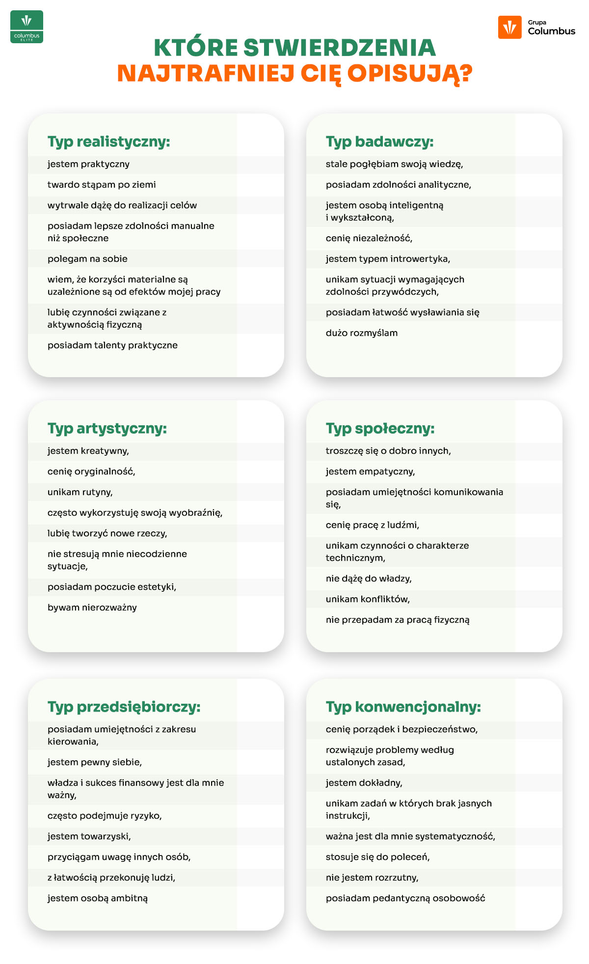 Typy osobowości zawodowych — Teoria Hollanda